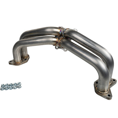 With all of that we have a much higher flowing header that will offer not only improved turbo response, but also higher peak power availability in comparison to the restrictive stamped OEM header.