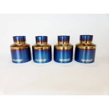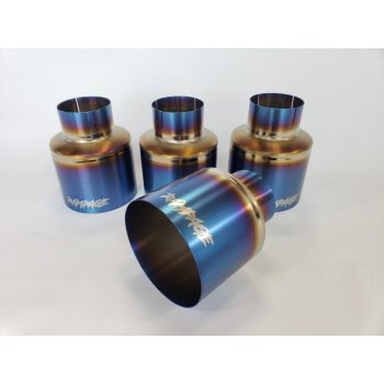 Our exhaust tips are hand-made in-house and designed to fit a majority of aftermarket R-35 exhaust systems. They are single walled and available with straight cut or 15* angle cut aesthetics.