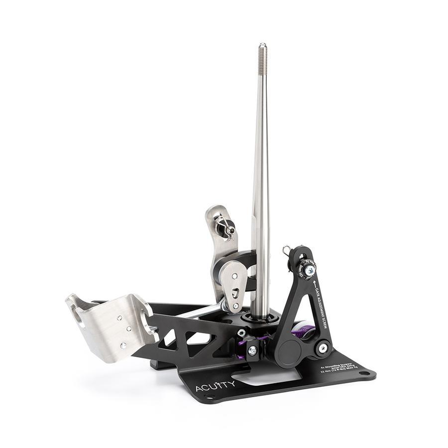 You will likely find that the improved precision will lead to more confidence in quick shifts and more consistent shifting in general. Because the shifter is made from much stiffer materials than the stock shifter, shifts will feel more rigid, defined, and confidence-inspiring during spirited driving. The discerning driver will notice more feedback from the gearbox compliments of this rigid construction; this can be useful in determining the quality of your footwork on the clutch and shift timing. The exact shifting feel is largely up to you, and we highly suggest you take time tuning the gate spacing and throw to your liking before reinstalling the console. The exact ratio of throw distance to gate spacing is a very personal matter; take advantage of the adjustments to make the H-pattern perfect for you. The joints in Acuity's shifter are carefully designed to be low-friction and very efficient at wear-compensating. This means that your shifter will give you a much longer service life than an OEM shifter before any signs of wear are noticeable.