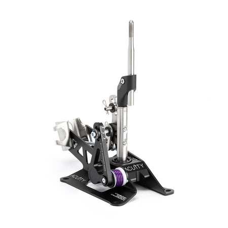 You will likely find that the improved precision will lead to more confidence in quick shifts and more consistent shifting in general. Because the shifter is made from much stiffer materials than the stock shifter, shifts will feel more rigid, defined, and confidence-inspiring during spirited driving. The discerning driver will notice more feedback from the gearbox compliments of this rigid construction; this can be useful in determining the quality of your footwork on the clutch and shift timing. The exact shifting feel is largely up to you, and we highly suggest you take time tuning the gate spacing and throw to your liking before reinstalling the console. The exact ratio of throw distance to gate spacing is a very personal matter; take advantage of the adjustments to make the H-pattern perfect for you. The joints in Acuity's shifter are carefully designed to be low-friction and very efficient at wear-compensating. This means that your shifter will give you a much longer service life than an OEM shifter before any signs of wear are noticeable.