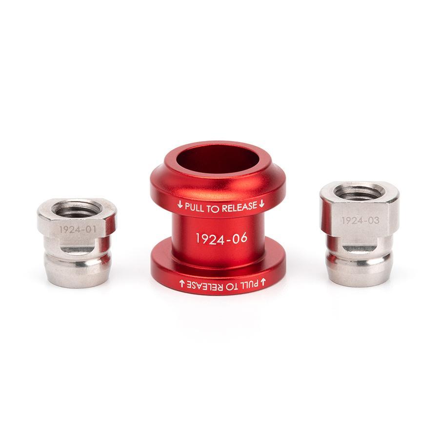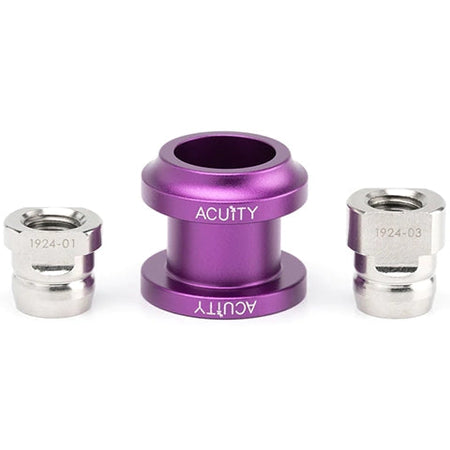 Gone are the days of sagging shift boots, broken plastic shift boot collars, and shift boot collars that don't match the diameter or style of your shift knob. ACUITY designed this Shift Boot Collar Upgrade to allow use of virtually any M10x1.5 shift knob in your Honda without sacrificing fit and finish between the shift boot and shift knob. This kit includes 2 binding nuts, one meant for flat-bottomed knobs, and the other meant for boss-bottomed knobs (like modern Civic Type R and Honda Factory Performance designs). The boot collar is reversible and can be flipped to match your knob's base diameter, whether it be a traditional narrow-bottomed knob (with a 22mm lower diameter) or the newer style wide-bottomed knobs (with a 28mm lower diameter). An integral retaining feature lets you easily pop the boot collar on and off many times without problems, so you no longer have to worry about breaking the OEM plastic boot ring when removing your shift knob. The supplied binding nuts are turned and milled from stainless steel and have flats for a 12mm open-ended wrench. The boot collar is made from 6061 billet aluminum and receives a tasteful anodized/sandblasted finish before laser etching.