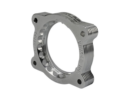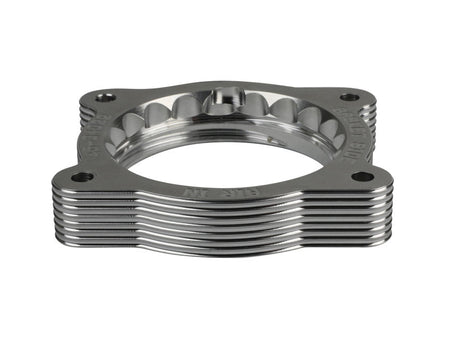 The serrated/helix design creates air turbulence in the intake manifold. This turbulence increases the air pressure in the combustion chamber, resulting in increased performance and improved throttle response. The serrated/helix combination design also reduces intake whistle that occurs with helix-only designs (US PAT 07055513). This Silver Bullet throttle body spacer is precision machined from 6061-T6 billet aluminum for lightweight, high strength, and perfect fit and finish. Its black anodized finish gives a stealthy look. Adding a Silver Bullet Throttle Body spacer lengthens the intake track which helps increase intake air speed, performance and improve throttle response. This Silver Bullet throttle body spacer uses all factory mounting locations, making for a hassle-free installation. A supplied gasket provides a perfect seal.