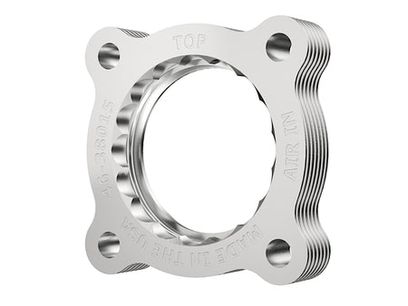 The Serrated/Helix combination design creates intake turbulence in the combustion chamber. This turbulence breaks up the fuel which creates a more complete combustion cycle increasing horsepower, torque and improving throttle response. The Serrated/Helix combination design also reduces intake whistle that occurs with Helix only designs. All Silver Bullet Throttle Body Spacers are constructed from 6061-T6 billet aluminum precision machined for light weight, high strength and perfect fit and finish. This Silver Bullet throttle body spacer uses all factory mounting locations providing stability and a hassle-free installation.