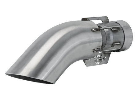 This direct-fit clamp-on tip is constructed from 304 stainless steel and features a brushed finish for corrosion resistance for long lasting good looks. Designed to fit 3" exhaust systems; 3" inlet x 4" outlet and 15" inch length. This tip features an aFe POWER logo for an aggressive, custom look. A high quality stainless steel clamp is used for a complete 360 degree sealing surface. The unique Patented Design of this intercooled exhaust tip will reduce exhaust temperatures by as much as 40%