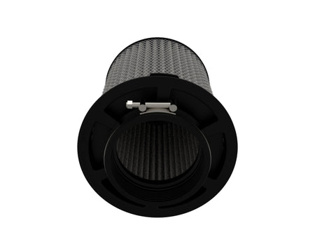 This filter features three layers of oil-free synthetic media and requires no oil during maintenance to provide maximum convenience. Its progressive layering provides great filtration efficiency and dust holding capacity, while its inverted top makes for more filter surface area, resulting in longer service intervals. This media is best suited for street and light off-road use. Pro DRY S filters are easily recharged with aFe's POWER CLEANER. aFe POWER performance air filters use a rounded, evenly spaced pleat design which allows for more usable filter surface area, providing increased flow and greater dust holding capacity. This aFe POWER performance air filter is constructed with a polyurethane base and top. Unlike other materials that degrade after repeated heat cycles in an engine bay, polyurethane maintains its original molded shape. Utilizing the filter's external locking tabs, the filter snaps into most Momentum series housings with zero hardware. This patent pending interface allows for easy filter maintenance and replacement.