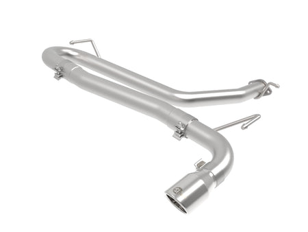 This axle-back exhaust system is constructed of 2-1/2 IN mandrel-bent 304 stainless steel tubing for maximum strength and durability. Finishing off this exhaust system is a 3-1/2 IN diameter polished 304 stainless steel clamp-on exhaust tip. The tip features a laser etched aFe POWER logo for a unique style. This system produces a powerful sound unleashing all available horsepower and torque. Utilizing a factory style flange and hangers this system is a direct bolt-on system, which requires no cutting or modifications for a hassle-free installation. Utilizing state-of-the-art computer-aided design technology, this exhaust system is designed for custom, high tolerance factory fitment. 100% MIG-Welded for race-proven strength and durability.