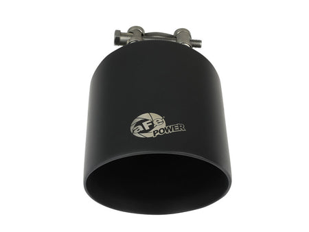 This tip is constructed using 304 stainless steel for maximum strength and durability. Branded with a laser etched aFe POWER logo for quality authenticity. A high quality stainless steel barrel band clamp is used for a complete 360 degree sealing surface. Universal tip - will fit to 2-1/2" exhaust tubing and is easy to install and adjustable. See below for specifications. 2-1/2" inlet x 4" outlet x 7" overall length