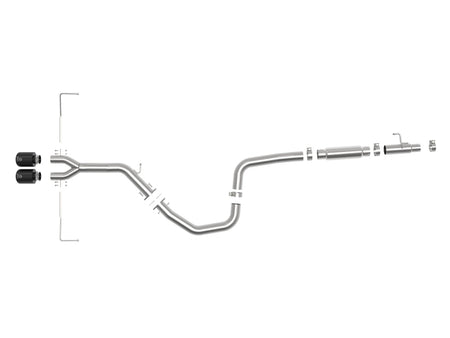 Performance Gains: This system produced gains of up to +11 HP and +10 lbs. x Ft. TQ., as measured on our in-house dyno. 3" - 2-1/2" 304 Stainless Steel Construction: This cat-back exhaust system is constructed of 3" - 2-1/2" mandrel-bent 304 stainless steel tubing for maximum strength and durability. Dual 4-1/2" Diameter Black Exhaust Tips: Finishing off this exhaust system are dual 4-1/2" diameter black 304 stainless steel clamp-on exhaust tips. The tips feature a laser etched Takeda logo for a unique style. Powerful Sound: This system produces a powerful sound unleashing all available horsepower and torque. Installation: Some cutting may be required, see instruction sheet for further information. Utilizing factory style flanges and hangers this system mounts directly to factory mounting locations for a hassle-free installation. Integrated Mitered Merge Collector: A mitered merge collector is used to decrease turbulence and increase exhaust velocity resulting in increased horsepower, torque and improved throttle response. Computer-Aided Design: Utilizing state-of-the-art computer-aided design technology, this exhaust system is designed for custom, high tolerance factory fitment. MIG-Welded: 100% MIG-Welded for race-proven strength and durability. Resonator: This system features a 4" x 16" 304 stainless steel resonator to reduce drone. An optional resonator delete pipe is available (PN 49-36622). Emissions Disclaimer: This product does not require a CARB EO#. aFe POWER exhaust systems are engineered and manufactured in our Corona, California facility.