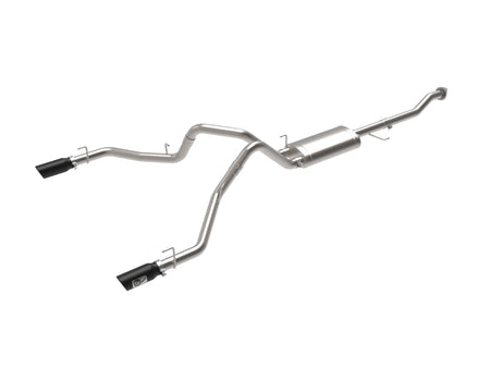 This system produced gains of up to +10 HP and +11 lbs. x Ft. TQ., as measured on our in-house dyno. This cat-back exhaust system is constructed of 3 IN mandrel-bent 304 stainless steel tubing for maximum strength and durability. This system features a high-flow 304 stainless steel muffler, producing a aggressive sound. Finishing off this exhaust system are dual 4-1/2 IN diameter black 304 stainless steel clamp-on exhaust tips. The tips features an aFe POWER logo plate riveted on for a unique style. This system produces an aggressive sound unleashing all available horsepower and torque. Utilizing a factory style flange and hangers this system is a direct bolt-on system, which requires no cutting or modifications for a hassle-free installation. Utilizing state-of-the-art computer-aided design technology, this exhaust system is designed for custom, high tolerance factory fitment. 100% MIG-Welded for race-proven strength and durability.
