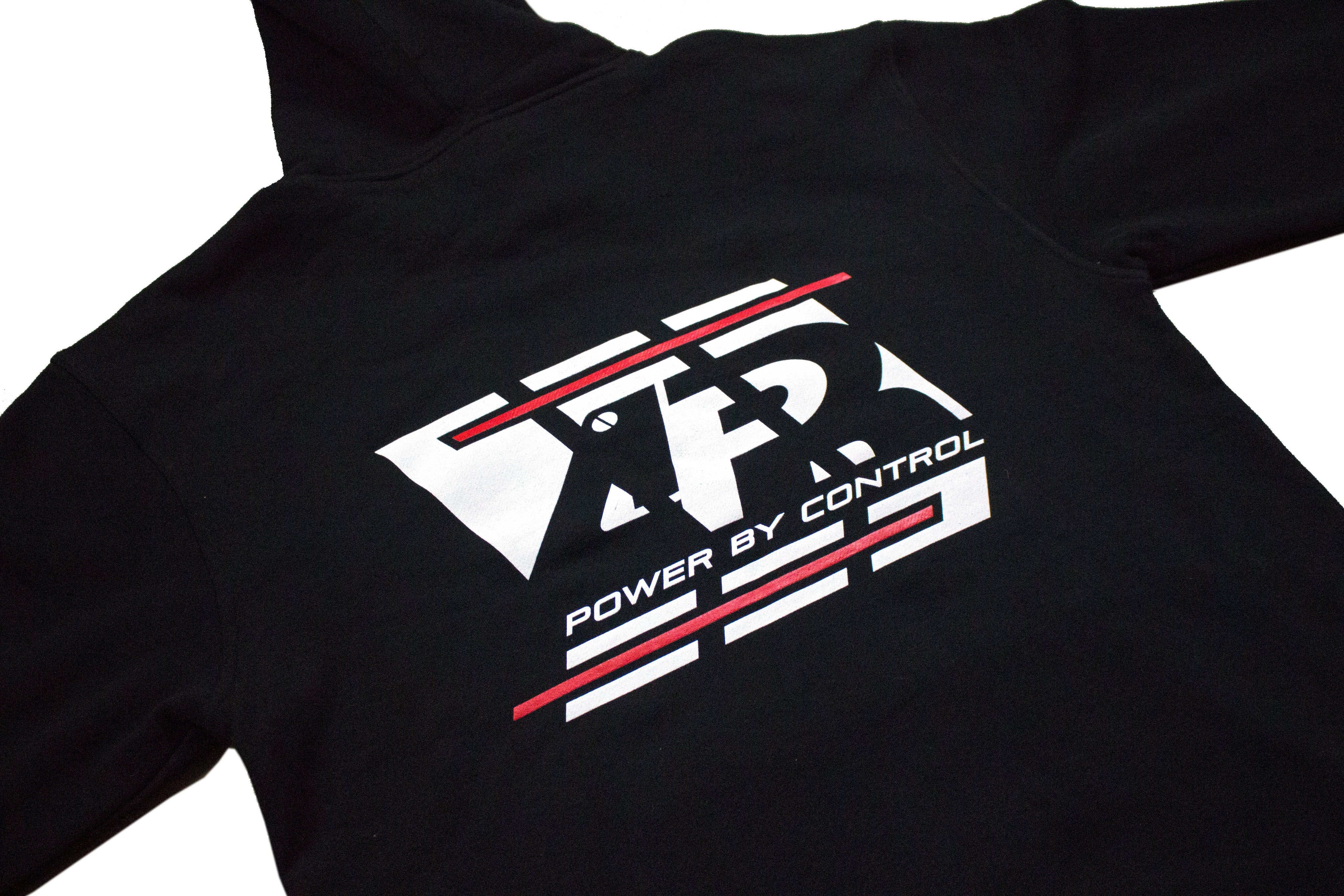 APR Performance Premium Hoodie features the APR Performance logo screen printed on the left chest side with APR logo and Powered By Control slogan overlayed on top of rumble strips in the back.