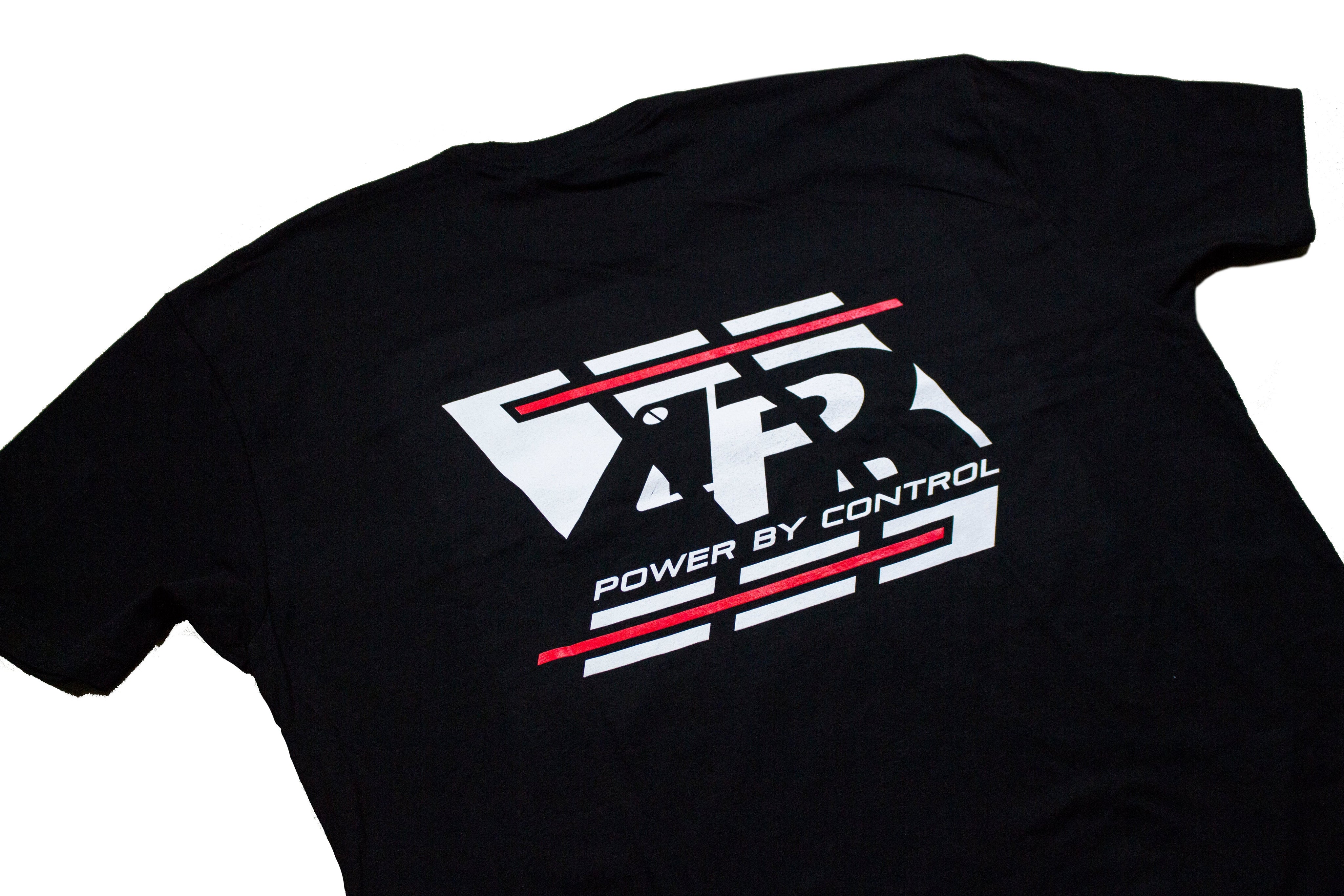 APR Performance Premium T-Shirt features the APR Performance logo screen printed on the left chest side with APR logo and Powered By Control slogan overlayed on top of rumble strips in the back.