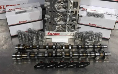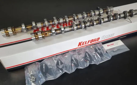 Drag racing camshafts suited to high rpm power. Designed for AUDI RS3 Daza engines making 1400+hp using 75mm-83mm turbos. Requires KVS273-BT valve spring upgrade. NOTE: 7mm dowel pin supplied to limit Intake cam gear advance to 96° when using OEM piston designs. For best results, fly cut pistons for maximum stroke (Please check Piston to Valve clearance). Kelford Cams deletes the AVS Variable exhaust lift system.