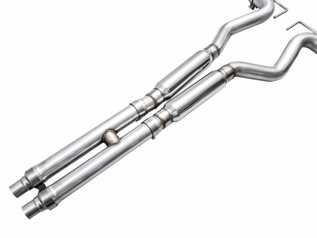 Presenting the AWE Cat Back Exhaust for the Ford S650 Mustang GT. You’re looking at the Track Edition - the rowdiest version of the lineup. The AWE Track Edition has minimal filter in the rear via dual straight lengths of 3” stainless steel - it’s light, it’s loud (in & out), it’s cost-effective, and it isn’t for the faint of heart–you’ve been warned (and for this reason, the Track Edition can not be returned for sound reasons!). Full 3” & modular, the Track Edition features a full 3” design with modular, slip-fit inlet adapters for perfect mating with the factory headers, while facilitating a dual 3” connection for drivers looking to get spicier upstream one day (or now). And thanks to the precision AWE H-pipe, your 5.0L V8 will produce a deep, rich muscle tone with minimal wrasp (unlike an X-pipe). The Track Edition features straight-through bullet-style resonators in the mid pipes to further defeat wrasp, which becomes especially helpful should you upgrade your headers. When it comes to power to the pavement, we’re looking at dyno-verified gains of +12 hp and +10 lb-ft of torque at the wheels on an otherwise stock vehicle. The full AWE Track Edition is 100% emission-friendly, not interfering with any factory emissions equipment. Bringing up the rear are quad 4.5” slash-cut, double-walled, and individually adjustable tips, available in chrome silver or diamond black. Made in PA, USA: engineered, designed, and manufactured in-house at AWE using US-sourced .065”-wall T304L stainless steel. All this plus 50 state emissions compliance, AWE’s Fitment Guarantee, No Check Engine Light Guarantee, and the AWE Lifetime Warranty.