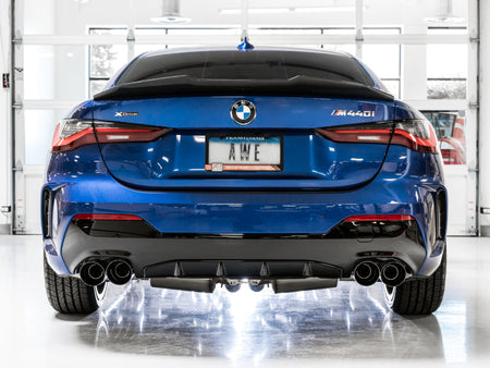 Presenting The Best Sounding Exhausts on the Planet™ for the BMW G20 M340i: At the intersection of sophistication and aggression lies the Touring Edition Exhaust. A dual 3” T304L stainless steel downpipe-back configuration, the AWE Touring Edition Exhaust is the perfect dose of steel for drivers looking for straight-pipe performance while not sacrificing daily drivability: a deep, sophisticated exhaust note with zero drone at highway speeds. Featuring a stamped stainless steel merge upstream equivalent to dual 3” tubing coming right off of the downpipe. Translation: an impressive 65% increase in flow over stock that future proofs for downpipes of various sizes. Beyond the unique merge, the exhaust splits into dual 3” piping to allow optimal flow throughout the entire exhaust route. Bringing up the rear, the Touring Edition features AWE’s patented drone-canceling solution, 180 Technology®, which targets and omits drone-prone frequencies. What’s this mean for you? You’ll be tuned into a pure, full-bodied B58 soundtrack unlike any other. Equipping a downpipe? Read this (seriously): The Touring Edition Exhaust is available as non-resonated or resonated. We recommend the non-resonated variant for vehicles equipped with the stock downpipe. If your M340i is equipped with an aftermarket downpipe, we recommend going resonated. Have the stock downpipe but plan to go aftermarket later? No worries, you can swap in the resonated midsections with ease via an AWE Resonator Conversion Kit. Hit us here if you're in need of this Conversion Kit.Track Edition ExhaustTip Options: The Touring and Track Edition Exhausts feature statement-making quad 102mm, double-walled, slash-cut tips in either chrome silver or diamond black, complete with a stamped AWE logo. For those who want to keep their OE tips in place, we have configurations that were designed specifically to do that. Just for you.