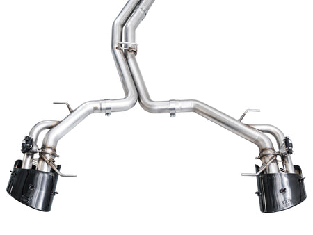The SwitchPath™ Exhaust comprises 3-inch U.S.-sourced T304L stainless steel featuring a bespoke, straight-through center resonator featuring AWE’s proprietary drone-canceling solution, 180 Technology®, tuned specifically for the 4.0TT. Maintaining and utilizing the factory valve behavior, SwitchPath™ tech obeys orders given via the MMI and Drive Select to determine its mood just as the stock exhaust would. When the valves are closed, the SwitchPath™ Exhaust produces a sophisticated soundtrack. At cruising speeds, interior acoustics are close to stock with no drone thanks to the 180 Technology® resonator. SwitchPath™ tech also responds perfectly to Drive Select, so if you drop the hammer while cruising, expect it to behave just like factory. Open the valves and the 4.0TT’s roar is uncorked. Dynamic mode achieves the ultimate contrast in behavior when compared to comfort driving modes. The exhaust note is powerful, clean, and aggressive. Thanks to the 180 Technology®-equipped resonator in the center, drone-prone frequencies are still kept in check while allowing the exhaust note to reach full aggression. Now, let's chat about tips: given the RS’ interior sound deadening, it made hearing the enhanced exhaust sound a challenge. Enter AWE’s parabolic tip design–the ReflecTip–engineered to reflect the exhaust note toward the driver. They’re 31% larger than the stock tips, fill the valance perfectly, and come standard in AWE’s signature diamond black finish. They mount independently to the bumper via included brackets allowing them to float around the outlets of the SwitchPath™ exhaust, reflect off of the inner geometry of the tips, and back towards you. AWE SwitchPath™ Exhausts come complete with two AWE parabolic tips in diamond black, two valve extension harnesses, and all required hardware and bracketry for installation. AWE's Lifetime Warranty, No CEL Light Guarantee, and Perfect Fitment Guarantee come standard.