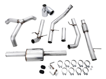 AWE 0FG Catback Split Rear Exit Exhaust for 4th Gen Silverado/Sierra 1500 5.3L (Flat Bumper) - Dual Chrome Silver Tips