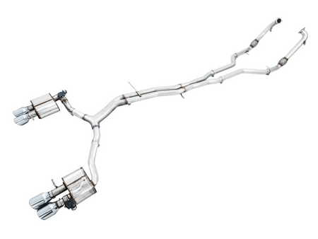 From the masters of S5 performance, AWE proudly presents the B9 S5 Sportback exhaust solution. Signature AWE tone, performance, and options for every taste and budget. The SwitchPath™ valved solution is for those who want complete control of their S5’s volume and tone, at their fingertips. The AWE SwitchPath™ Exhaust comes complete with non-resonated downpipes, a precision-engineered x-pipe mid-section, and two valved muffler sections which can be controlled via the SwitchPath™ Remote, or factory valve programming. Sneaking out in the morning? Keep the valve closed. Ready to rumble? Open the valve and let them know you're coming. All tip options include the AWE logo, and double walling to ensure a mirror finish even under hard usage. All tips are individually adjustable, allowing depth into the bumper to be set according to personal taste. Pro tip: we recommend and encourage pairing the SwitchPath™ Exhaust with the SwitchPath™ Remote versus using the factory operation for the best SwitchPath™ experience. Meet the perfected B9 S5 soundtrack.Note: you may notice a slight valve rattle upon cold start as you would with many factory valved systems. This sound will go away within a few minutes and you will be off to the races in no time.