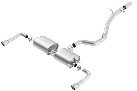 System features polished T-304 stainless steel tips. Borla(r) Cat-Back(tm) & Axle-Back exhaust systems feature patented straight-through and multi-core technology designed to unleash hidden horsepower. Increased exhaust velocity adds power, driving excitement, fuel economy, and the distinctive Borla(r) Sound of Power respected by motoring enthusiasts everywhere. Each system is built from premium T-304 stainless steel, superior to T-400 series knockoffs (such as 409), to give you the absolute best in performance and durability. Ultra-smooth mandrel bends ensure maximum flow & power, and precision computer-controlled CNC manufacturing ensures an accurate fit. Best of all, Borla(r) stands behind every system with a Million-Mile Warranty. Just what you'd expect from the world's most experienced (and most winning) exhaust brand.