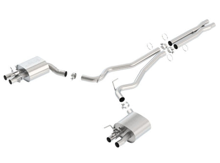 This dual 2.75" diameter into the mufflers with dual 2.5" out of the mufflers Cat-Back™ system features the aggressive ATAK® sound. It has a Merge X-Pipe for increased performance and improved sound. BORLA®'S advanced muffler technology allows us to provide a no drone guarantee on this system. Tips NOT included, this system utilizes the factory exhaust tip/ bezels. System features valves for the Selectable Driving Mode. BORLA® Cat-Back™ and Axle-Back exhaust systems feature patented straight-through and multi-core technology designed to unleash hidden horsepower. Increased exhaust velocity adds power, driving excitement, fuel economy, and the distinctive BORLA® Sound of Power respected by motoring enthusiasts everywhere. Each system is built from premium T-304 stainless steel, superior to T-400 series knockoffs (such as 409), to give you the absolute best in performance and durability. Ultra-smooth mandrel bends ensure maximum flow & power, and precision computer numerical control (CNC) manufacturing ensures an accurate fit. Best of all, BORLA® stands behind every system with a Million-Mile Warranty. Just what you'd expect from the world's most experienced (and most winning) exhaust brand.