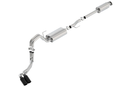 EXCEPT Raptor. Add Adapter 60556 for Crew Cab with Standard Bed (6' 7") 156.8" wheelbase, or Adapter 60564 for Ext. Cab with Long Bed (8' 2") 163.7" wheelbase. This 3" into dual 2.25" system features the classic S-Type sound with no drone inside the vehicle and exits through 4" black chrome on T-304 stainless steel tips. Using Borla(r) Stainless Steel Polish p# 21461 is NOT recommended with these black chrome tips. We suggest cleaning the tips with hot water and a microfiber cloth. A system with b chrome on T-304 stainless steel tips is also available. Borla(r) Cat-Back(tm) and Axle-Back exhaust systems feature patented straight-through and multi-core technology designed to unleash hidden horsepower. Increased exhaust velocity adds power, driving excitement, fuel economy, and the distinctive Borla(r) Sound of Power respected by motoring enthusiasts everywhere. Each system is built from premium, high-quality T-304 stainless steel, superior to T-400 series knockoffs (such as 409), to give you the absolute best in performance and durability. Ultra-smooth mandrel bends ensure maximum flow & power, and precision computer numerical control (CNC) manufacturing ensures an accurate fit. Best of all, Borla(r) stands behind every system with a Million-Mile Warranty. Just what you'd expect from the world's most experienced (and most winning) exhaust brand.