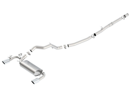 This system is equipped with a "Sound Suppressing Valve" simulator which ELIMINATES the valve. This avoids any warning lights on the dash while providing maximum flow at all times. System also features Boryla's Polyphonic Harmonizer Technology which utilizes patented units that contain pipes of different diameters and lengths to create multiple exhaust notes that harmonize to deliver a clean, rich, full-bodied sound to the Borla(r) mufflers. The mufflers then enhance this sound to the character and volume appropriate for our Touring, S-Type and ATAK(r) systems. This system features bright chrome on T-304 stainless steel tips. Borla(r) Cat-Back(tm) & Axle-Back exhaust systems feature patented straight-through and multi-core technology to unleash hidden horsepower. Increased exhaust velocity adds power, driving excitement, fuel economy, and the distinctive Borla(r) Sound of Power respected by motoring enthusiasts everywhere. Each system is built from premium T-304 austenitic stainless steel, superior to T-400 series knockoffs (such as 409), to give you the absolute best in performance and durability. Ultra-smooth mandrel bends ensure maximum flow & power, and precision computer-controlled CNC manufacturing ensures an accurate fit. Best of all, Borla(r) stands behind every system with a Million-Mile Warranty. Just what you'd expect from the world's most experienced (and most winning) exhaust brand.