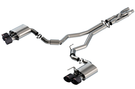 Borla(r) presents their premium exhaust system for the Ford Mustang Shelby GT500. Our dual 3" Cat-Back(tm) has been developed specifically for Ford's new supercharged 5.2L Predator engine with performance and sound in mind. The Borla(r) ATAK(r) sound level delivers an aggressive, head-turning sound that is fit for the Ford Mustang Shelby GT500. This exhaust system features quad 5" carbon fiber tips with black anodized centers, but is also available with bright chrome or black chrome tips. Our Cat-Back(tm) system retains the Active Exhaust Valve functionality and for the first time ever, includes our patent-pending SwitchFire(r) X-Pipe design. To ensure there's no compromise in comfort, it features our No-Drone technology. Elevate your driving experience, bolt on a Borla(r). Use With Connecting Pipe Kit 60722 For 2021-2023 Ford Mustang Mach 1 5.0L., Cat-Back(tm) Exhaust System, ATAK(r) Sound Level, Borla(r) SwitchFire(r) X-Pipe, Retains Active Exhaust Functionality, Dual 3" System Diameter, Quad 5" Carbon Fiber Tips With Bright Centers, T-304 Stainless Steel, No-Drone, Million-Mile Warranty, , Each Borla(r) Exhaust System is built from premium T-304 series stainless steel to give you the absolute best in performance and durability. We strive to provide you with the best quality products and stand behind our systems with a Million-Mile Warranty.
