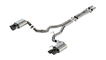 This 3" diameter True Dual Borla(r) Cat-Back(tm) system features a merge X-Pipe for increased performance and improved sound. This system contains active valves that retain the Active Exhaust functionality. Muffler contains Polyphonic Harmonizer technology which utilizes patented units that contain pipes of different diameters and lengths to create multiple exhaust notes that harmonize to deliver a clean, rich, full-bodied sound. It features the aggressive ATAK(r) sound with no drone inside the vehicle and 4" black chrome on T-304 stainless steel tips. Using Borla(r) Stainless Steel Polish p# 21461 is NOT recommended with these black chrome tips. We suggest cleaning the tips with hot water and a microfiber cloth. Systems with bright chrome on T-304 stainless steel tips, carbon fiber tips are also available. Borla(r) Cat-Back(tm) and Axle-Back exhaust systems feature patented straight-through and multi-core technology designed to unleash hidden horsepower. Increased exhaust velocity adds power, driving excitement, fuel economy, and the distinctive Borla(r) Sound of Power respected by motoring enthusiasts everywhere. Each system is built from premium T-304 stainless steel, superior to T-400 series knockoffs (such as 409), to give you the absolute best in performance and durability. Ultra-smooth mandrel bends ensure maximum flow & power, and precision computer numerical control (CNC) manufacturing ensures an accurate fit. Best of all, Borla(r) stands behind every system with a Million-Mile Warranty. Just what you'd expect from the world's most experienced (and most winning) exhaust brand.