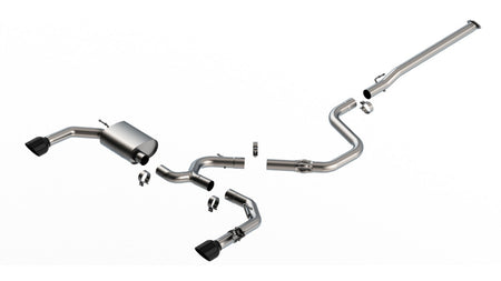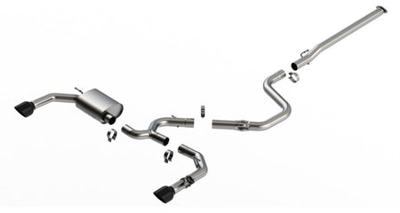 This 3" diameter Borla(r) Cat-Back(tm) system was designed specifically for the Hyundai Elantra N. The Borla(r)'s system features and Active Exhaust Valve which connects to the Original Equipment control system and provides variable sound levels. The ATAK(r) muffler provides an aggressive tone that is sure to turn heads. Borla(r) is so confident of our engineering and technology in this system that we offer a no drone guarantee. The system features single round 5" black chrome on T-304 stainless steel tips on each tail pipe. Using Borla(r) Stainless Steel Polish p# 21461 is NOT recommended with these black chrome tips. We suggest cleaning the tips with hot water and a microfiber cloth. A system with bright chrome on T-304 stainless steel tips is also available. Borla(r) Cat-Back(tm) & Axle-Back exhaust systems feature patented straight-through and multi-core technology to unleash hidden horsepower. Increased exhaust velocity adds power, driving excitement, fuel economy, and the distinctive Borla(r) Sound of Power respected by motoring enthusiasts everywhere. Each system is built from premium T-304 austenitic stainless steel, superior to T-400 series knockoffs (such as 409), to give you the absolute best in performance and durability. Ultra-smooth mandrel bends ensure maximum flow & power, and precision computer numerical control (CNC) manufacturing ensures an accurate fit. Best of all, Borla(r) stands behind every system with a Million-Mile Warranty. Just what you'd expect from the world's most experienced (and most winning) exhaust brand.