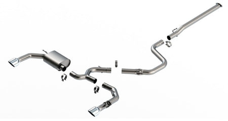 This 3" diameter Borla(r) Cat-Back(tm) system was designed specifically for the Hyundai Elantra N. The Borla(r)'s system features and Active Exhaust Valve which connects to the Original Equipment control system and provides variable sound levels. The ATAK(r) muffler provides an aggressive tone that is sure to turn heads. Borla(r) is so confident of our engineering and technology in this system that we offer a no drone guarantee. The system features single 5" round bright chrome on T-304 stainless steel tips on each tail pipe. A system with black chrome on T-304 stainless steel tips is also available. Borla(r) Cat-Back(tm) & Axle-Back exhaust systems feature patented straight-through and multi-core technology to unleash hidden horsepower. Increased exhaust velocity adds power, driving excitement, fuel economy, and the distinctive Borla(r) Sound of Power respected by motoring enthusiasts everywhere. Each system is built from premium T-304 austenitic stainless steel, superior to T-400 series knockoffs (such as 409), to give you the absolute best in performance and durability. Ultra-smooth mandrel bends ensure maximum flow & power, and precision computer numerical control (CNC) manufacturing ensures an accurate fit. Best of all, Borla(r) stands behind every system with a Million-Mile Warranty. Just what you'd expect from the world's most experienced (and most winning) exhaust brand.