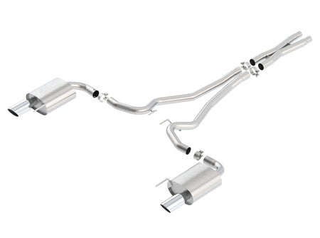 • System contains a merge X-Pipe for increased performance and improved sound. This system features the aggressive ATAK(r) sound and 4" bright chrome on T-304 stainless steel tips. Borla(r) Cat-Back(tm) & Axle-Back multi-core technology is designed to unleash hidden horsepower. Increased exhaust velocity adds power, driving excitement, fuel economy, and the distinctive Borla(r) Sound of Power respected by motoring enthusiasts everywhere. Each system is built from premium T-304 stainless steel, superior to T-400 series knockoffs (such as 409), to give you the absolute best in performance and durability. Ultra-smooth mandrel bends ensure maximum flow & power, and precision computer numerical control (CNC) manufacturing ensures an accurate fit. Best of all, Borla(r) stands behind every system with a Million-Mile Warranty. Just what you'd expect from the world's most experienced (and most winning) exhaust brand.