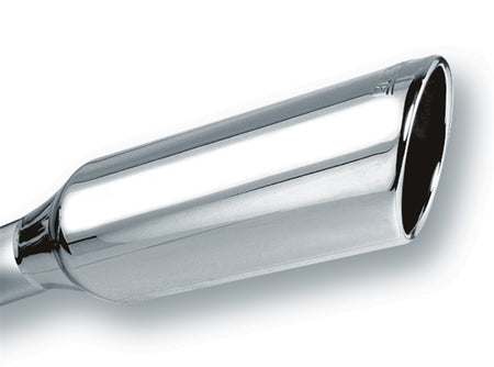 Universal Exhaust Tip T-304 Stainless Steel 3" Inlet - 4" Single Round Rolled-Edge Angle-Cut Outlet - 12" Long Tip T-304 Stainless Steel Embossed With Borla(r) Logo. Weld On Mounting Method.