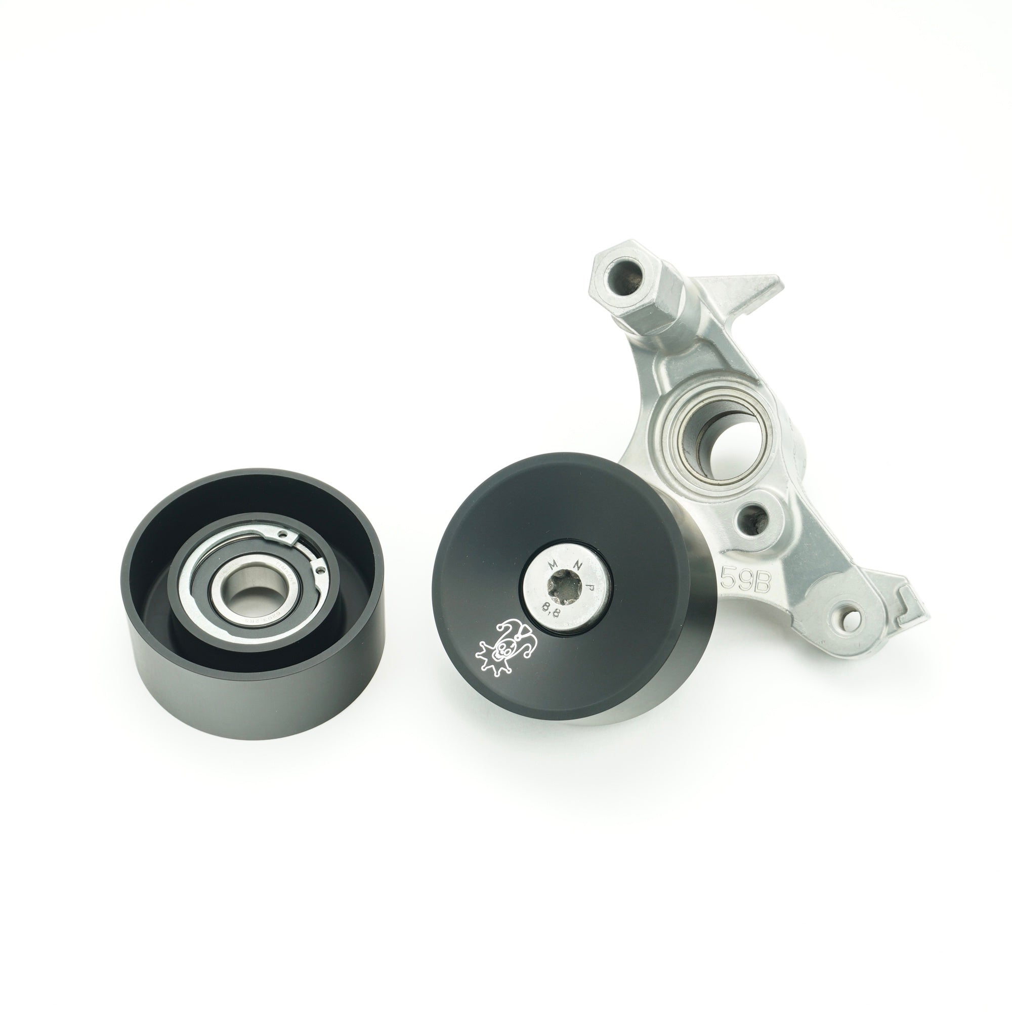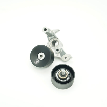 This is the Wunderladen Racing billet idler/tensioner pulley for both the 1.5T and 2.0T engines found in both 10th and 11th gen Civics. The factory pulley is a low quality pulley made from stamped steel. This means the stock pulley is not only heavy but also prone to rusting.