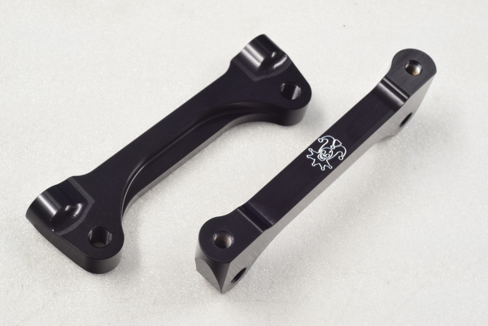 But wait, there's more! Our brake caliper mounting brackets are made from billet 7075 aluminum and they're anodized black for corrosion protection and a nice stealth look. Upgraded braided stainless steel brake lines are available but the factory brake lines are compatible with the EBC calipers too. Everything in these kits is made in the USA and UK!
