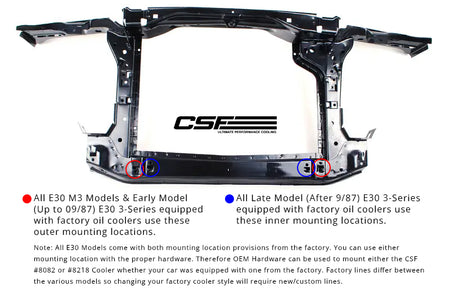 CSF offers the best and most advanced Oil Coolers on the market. So when it comes to keeping your engine oil temps down as you push your BMW E30 hard on the street or track, a CSF Oil Cooler is the obvious choice.