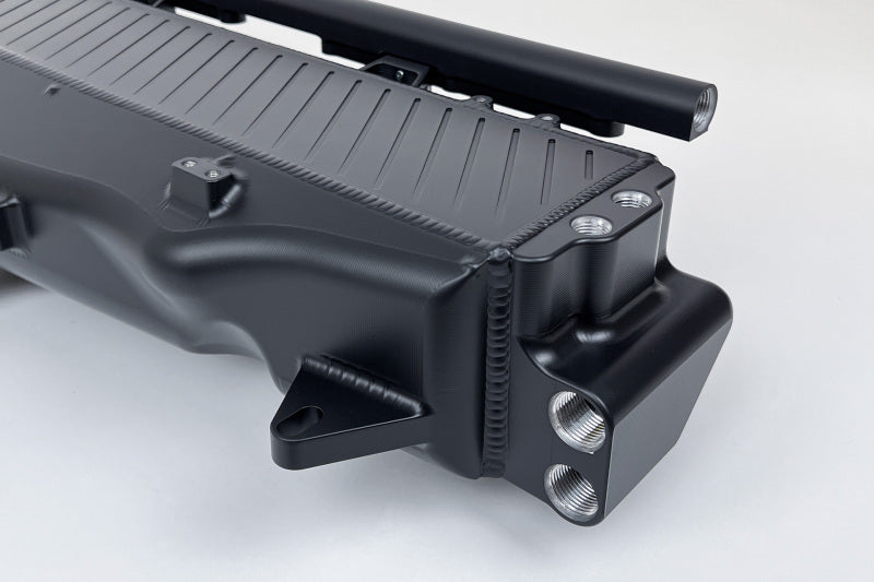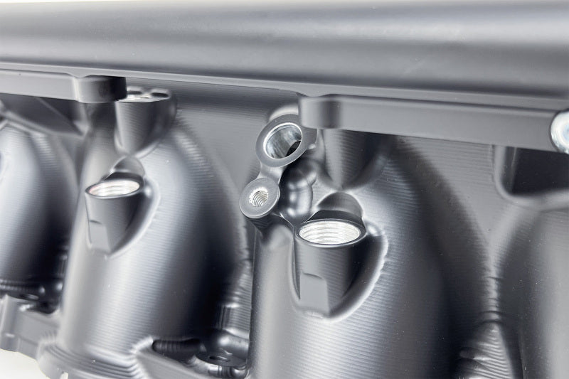 - Top Feed Port Injection with Included Fuel Rail & Individual Nitrous / Methanol Injector Ports: The CSF Manifold includes an extruded fuel rail which can be attached to the outlet side of the manifold. The AN-8 fuel rail comes with feed and return -8 internal hex plug fittings from Radium Engineering for a plug and play installation. A 1/8th NPT port on each cylinder runner can be used for nitrous or methanol injection. The CSF manifold allows for maximum spray control and even spray distribution throughout the engine.