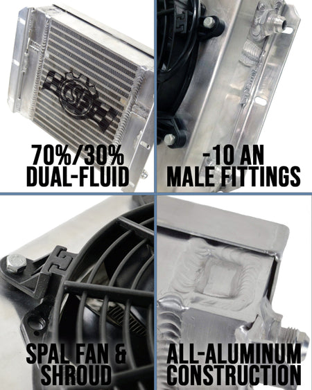 13.8in x 10in Dual Fluid Bar & Plate HD Oil Cooler w/9in SPAL Fan