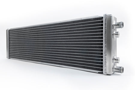 The ultimate universal dual-pass cross flow heat exchanger is the ideal option for you custom project. This cooler can be used as an Air-to-Water Intercooler Heat Exchanger, Small Radiator, or Auxiliary Radiator. The dual 3/4 inch (19mm) slip on connections allow for easy fluid line connections. Can be mounted in any orientation.
