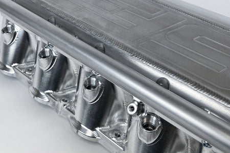 - The CSF Manifold includes an extruded fuel rail which attaches to the outlet side of the manifold. The AN-8 fuel rail comes with a -8 internal hex plug fitting. This allows you to run a returnless fuel system or a full loop setup. A 1/8" NPT port on each cylinder runner can be used for nitrous or methanol injection. The CSF manifold allows for maximum spray control and even spray distribution throughout the engine.