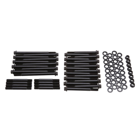 The Edelbrock #8513 bolt kit contain a complete set of the highest quality head bolts and hardened washers available. Cold-formed to ensure molecular integrity and heat treated prior to thread rolling and machining. Reduced diameter bolt heads eliminate the need for valve train removal to facilitate cylinder head re-torqueing. Hardened and parallel-ground washers are included. Rated at 170,000 p.s.i.