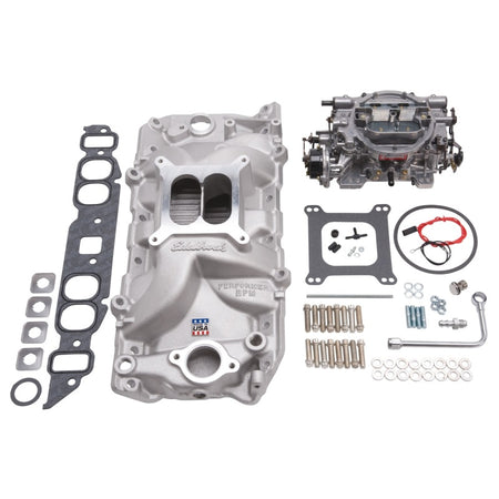 The Edelbrock #2062 Single-Quad Manifold and carb kit is designed for Big-Block Chevy Oval Port applications. With a Manifold and Carb Kit, it's easy to upgrade your induction system with the best combination of Edelbrock proven performance and looks in a single box. These kits include: an Edelbrock manifold, Performer or Thunder Series AVS carb, chrome fuel inlet, intake gasket set, intake bolt set and carb stud kit. The manifold and carbs are available with a standard satin finish or with our bright EnduraShine chrome-like finish for long lasting show quality looks.