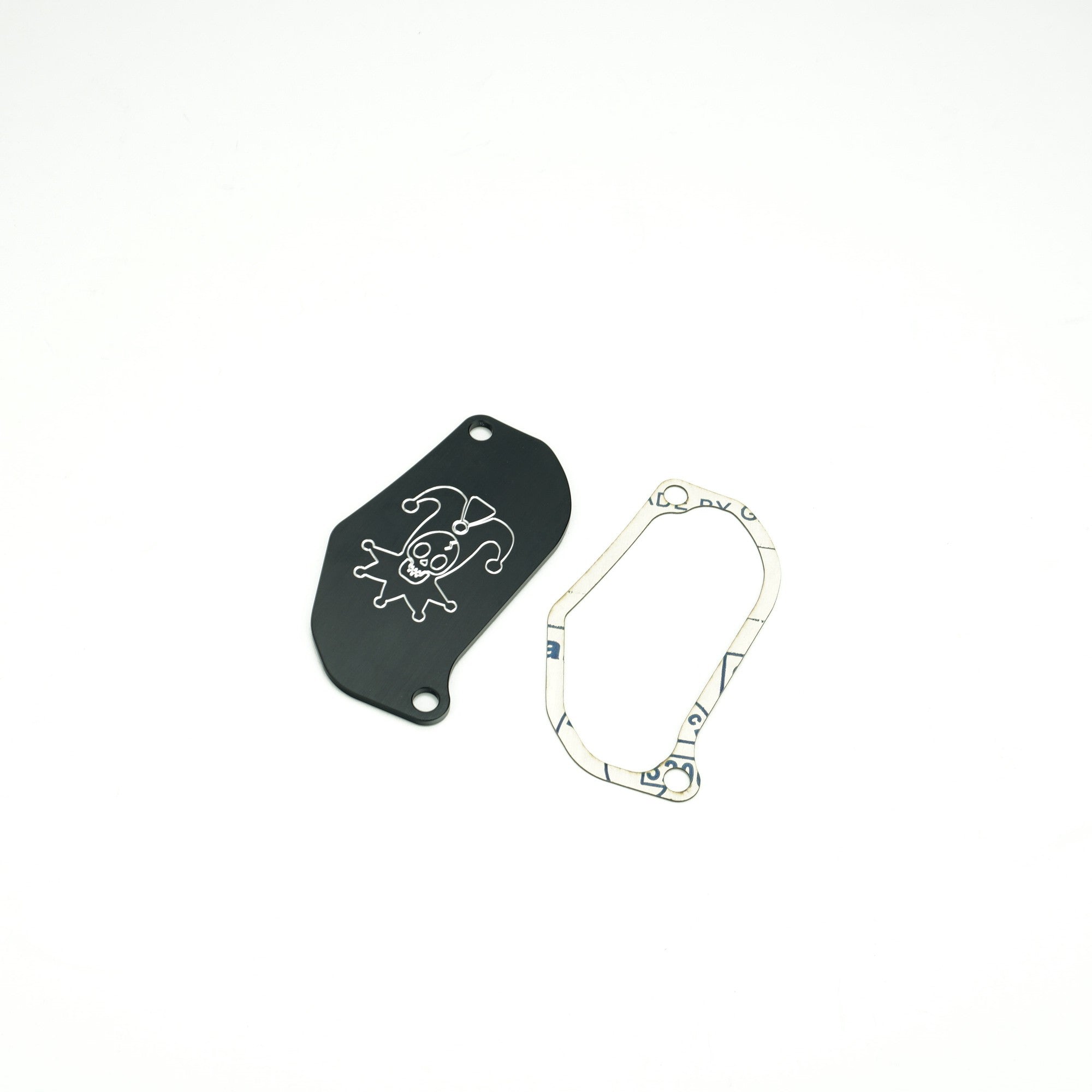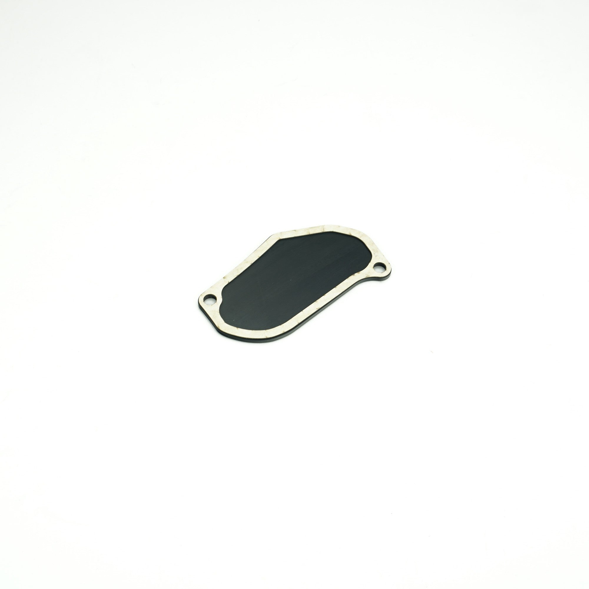 Our plate is machined from billet aluminum and utilizes a robust gasket to seal in lieu of RTV! Far easier to remove and replace than the factory piece without any possibility of bending it.