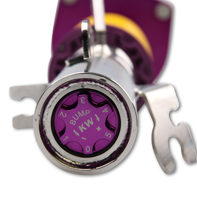Designed to maximize the performance on vehicles with DOT-R and other ultra high-performance tire setups. KW V3 Clubsport coilovers are the ideal choice for double-duty street cars, use at HPDE's(high performance drivers education), time attack or time trials, and club level racing. The Clubsport setup was specially designed on the Nordschleife and the continuous adjustable ride height allows for fine corner weight or making setup changes. The TVR-A and TVC-A valve technology -provide an unmatched level of separately adjustable damping for the rebound and compression enabling a customized set up appropriate for the vehicle's modifications such as weight, tire characteristics, and other various conditions. The KW V3 Clubsport INOX-LINE coilover kit is the ideal tool for performance-oriented drivers and experienced tuning enthusiasts who place a strong emphasis on the overall performance of their suspension. The KW V3 Clubsport features patented TVR-A and TVC-A technology -hat provides separately adjustable rebound and compression damping. The extensive Adjustment -angle of the independently configurable rebound and compression make it easy to directly influence the steering behavior, directional stability, grip and handling characteristics for confident and repeatable results at the limit of driving dynamics.