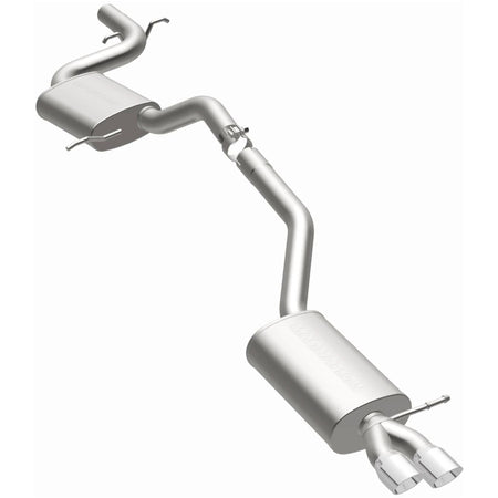 The MagnaFlow 2012-2018 Volkswagen Jetta Touring Series Cat-Back Performance Exhaust System is the perfect partner for your 1.8L, 2.0L 2012-2018 Volkswagen Jetta to take on a grand tour or a weekend cruise thanks to the powerful, resonant exhaust note and dyno-proven performance it brings to the table. This durable, corrosion resistant stainless steel exhaust kit is engineered to conquer the miles with ease while enhancing your driving experience with Moderate exterior and Mild interior sound levels generated through its fast-flowing, mandrel bent 2.5in. main piping and 2 Straight-Through muffler that terminate in a Dual Straight Driver Side Rear exit with 3in. Polished Welded-On Double Wall Angle Cut Rolled Edge tips. 15158 features a cat-back layout design to replace your import's stock exhaust components from the catalytic converter on back. This Volkswagen Jetta exhaust system is compatible with 2012-2018 engines. The use of extensive 3D scans made during the development process has resulted in an easy-to-install, direct-fit design that fits your Volkswagen Jetta like a glove. 15158 is produced using CNC precision robotic manufacturing techniques and is backed by MagnaFlow's limited lifetime construction warranty.