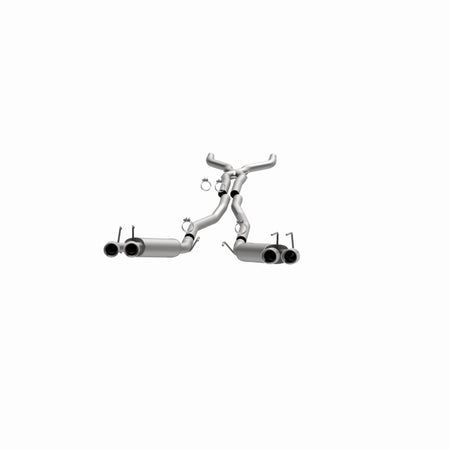 The MagnaFlow 2013-2015 Chevrolet Camaro Street Series Cat-Back Performance Exhaust System brings out the personality of your 6.2L 2013-2015 Chevrolet Camaro with our signature resonant, powerful engine tone and dyno-proven performance. Thanks to its fast-flowing, mandrel bent 3in. main piping and 2 Straight-Through mufflers ending in a Quad Split Rear exit with 4in. Polished Welded-On Double Wall Angle Cut Folded Edge tips, this Chevrolet Camaro exhaust kit has the performance chops to match its sporty sound and appearance. Upgrade your ride to the next level with an exhaust that has the pipes to put other Chevrolet Camaro's to shame. With this system your vehicle will be producing Moderate exterior and Mild interior sound levels while leaving other cars and trucks feeling envious at every stoplight. Exhaust kit 15053 features a cat-back layout that replaces your ride's stock exhaust components from near the catalytic converter on back. Extensive 3D scanning during development has resulted in a direct-fit design that you can easily install yourself. 15053 is produced using CNC precision robotic manufacturing techniques and is backed by MagnaFlow's 1-year limited finish warranty and limited lifetime construction warranty.