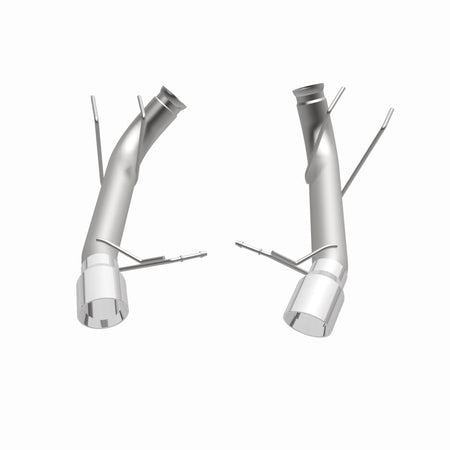The MagnaFlow 2013-2014 Ford Mustang Race Series Axle-Back Performance Exhaust System 15152 doesn't leave any performance on the table with a race-ready, light weight, dyno-proven design ready to help your 5.0L 2013-2014 Ford Mustang take on any pretenders, whether on the track or the street. Exhaust kit 15152 is engineered to produce our powerful, resonant signature exhaust note at Very Aggressive exterior and Aggressive interior sound levels with an axle-back layout that replaces your vehicle's exhaust components from near the rear axle on back. Please check to ensure compliance with local noise regulations. This Ford Mustang exhaust kit features fast-flowing mandrel bent 3in. diameter main piping that ends in a Dual Split Rear exit with 4in. Polished Welded-On Double Wall Angle Cut Folded Edge tips. Extensive 3D scanning during development and the use of advanced CNC precision robotic manufacturing techniques ensures that 15152's direct-fit design fits so perfectly that you can easily install the system yourself. The durable, corrosion resistant stainless steel construction of exhaust system 15152 is backed by MagnaFlow's limited lifetime warranty.