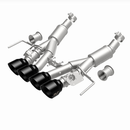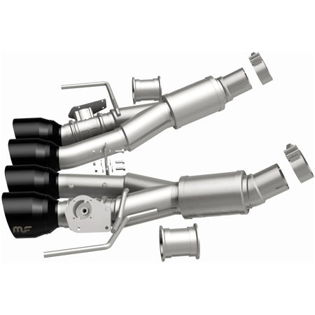The MagnaFlow Chevrolet Corvette C7 NEO Series Performance Exhaust System #19581 enhances your all-American sportscar with dyno-proven performance and an aggressive exhaust note that still maintains comfortably moderate sound levels within your Corvette’s interior. This C7 Corvette exhaust system is compatible with 2014-2019 automatic models with Active Fuel Management valves and features 3” fast-flowing mandrel bent main piping that passes through a straight-through muffler before ending in a quad rear exit with 4” black chrome finished tips. #19581’s direct-fit design enables do-it-yourself installation. The system also includes the exhaust valves necessary to work with your Corvette’s NPP dual mode controllable exhaust optional feature. Exhaust kit #19581 is made of premium, durable and corrosion resistant stainless steel and is produced using CNC precision robotic manufacturing. MagnaFlow stands by #19581 with its limited lifetime construction warranty and 1-year limited finish warranty.