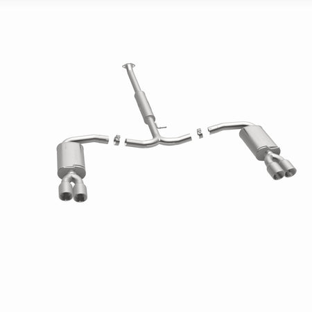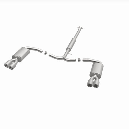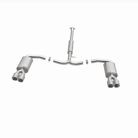 The MagnaFlow Street Series Cat-Back Performance Exhaust System 19457 brings out the personality of your Car with our signature resonant, powerful engine tone and dyno-proven performance. Thanks to its fast-flowing, mandrel bent 2.5in. main piping and 3 Straight-Through mufflers ending in a Quad Split Rear exit with 4in. Polished Welded-On Double Wall Angle Cut Folded Edge tips, this Car exhaust kit has the performance chops to match its sporty sound and appearance. Upgrade your ride to the next level with an exhaust that has the pipes to put other Car's to shame. With this system your vehicle will be producing Moderate exterior and Mild interior sound levels while leaving other cars and trucks feeling envious at every stoplight. Exhaust kit 19457 features a cat-back layout that replaces your ride's stock exhaust components from near the catalytic converter on back. Extensive 3D scanning during development has resulted in a direct-fit design that you can easily install yourself. 19457 is produced using CNC precision robotic manufacturing techniques and is backed by MagnaFlow's 1-year limited finish warranty and limited lifetime construction warranty.