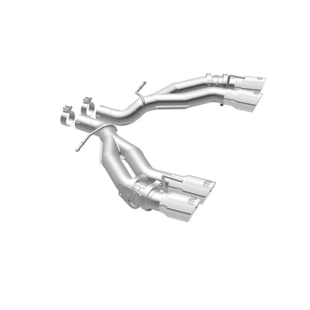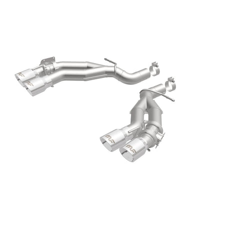 The MagnaFlow 2016-2024 Chevrolet Camaro Race Series Axle-Back Performance Exhaust System 19266 doesn't leave any performance on the table with a race-ready, light weight, dyno-proven design ready to help your 6.2L 2016-2024 Chevrolet Camaro take on any pretenders, whether on the track or the street. Exhaust kit 19266 is engineered to produce our powerful, resonant signature exhaust note at Very Aggressive exterior and Aggressive interior sound levels with an axle-back layout that replaces your vehicle's exhaust components from near the rear axle on back. Please check to ensure compliance with local noise regulations. This Chevrolet Camaro exhaust kit features fast-flowing mandrel bent 3in. diameter main piping that ends in a Quad Split Rear exit with 4in. Polished Welded-On Double Wall Angle Cut Folded Edge tips. Extensive 3D scanning during development and the use of advanced CNC precision robotic manufacturing techniques ensures that 19266's direct-fit design fits so perfectly that you can easily install the system yourself. The durable, corrosion resistant stainless steel construction of exhaust system 19266 is backed by MagnaFlow's limited lifetime warranty.