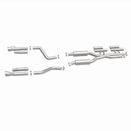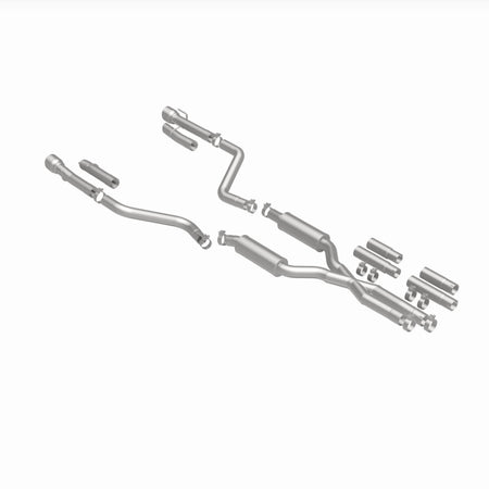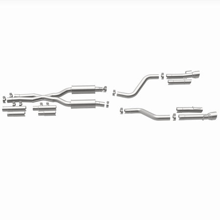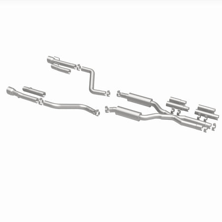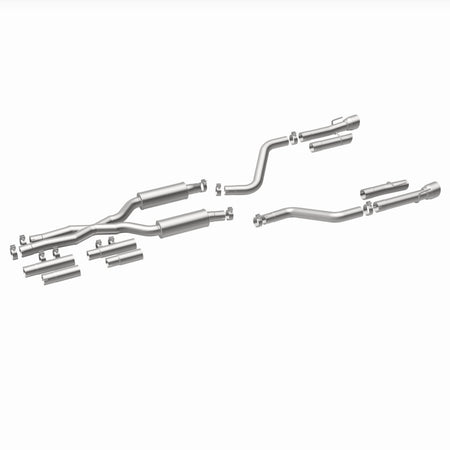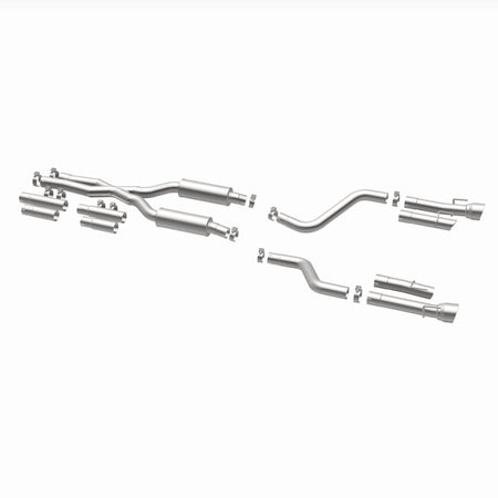 The MagnaFlow 2015-2023 Dodge Charger Competition Series Cat-Back Performance Exhaust System brings an aggressive, attention-grabbing edge to the deep resonant exhaust note we're so well known for. This exhaust kit is designed to enhance your 5.7L, 6.2L, 6.4L 2015-2023 Dodge Charger with dyno-proven performance made possible thanks to fast-flowing mandrel bent 3in. main piping and 2 Straight-Through mufflers ending in a Dual Split Rear exit with 4.5in. Polished Welded-On Double Wall Angle Cut Folded Edge tips featuring a sporty finish. The exhaust system's cat-back layout replaces your ride's exhaust system from near the catalytic converter on back. Exhaust system 19371 is engineered to make your vehicle's engine produce Aggressive exterior and Moderate interior sound levels, befitting its competition-oriented design. 19371's direct-fit design makes installation a breeze thanks to the use of advanced 3D scanning techniques. This performance exhaust system is made of 100% durable and corrosion-resistant stainless steel and produced using CNC precision robotic manufacturing, all backed by MagnaFlow's limited lifetime warranty. Please check to ensure compliance with local noise regulations.