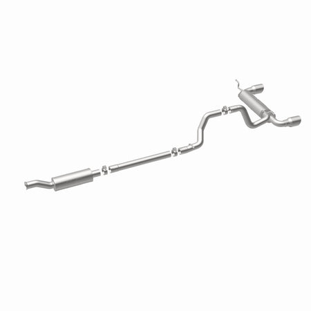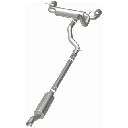 The MagnaFlow 2018-2025 Jeep Wrangler Street Series Cat-Back Performance Exhaust System brings out the personality of your 3.6L 2018-2025 Jeep Wrangler with our signature resonant, powerful engine tone and dyno-proven performance. Thanks to its fast-flowing, mandrel bent 2.5in. main piping and 2 Straight-Through mufflers ending in a Dual Split Rear exit with 4in. Polished Welded-On Double Wall Angle Cut Folded Edge tips, this Jeep Wrangler exhaust kit has the performance chops to match its sporty sound and appearance. Upgrade your ride to the next level with an exhaust that has the pipes to put other Jeep Wrangler's to shame. With this system your vehicle will be producing Moderate exterior and Mild interior sound levels while leaving other cars and trucks feeling envious at every stoplight. Exhaust kit 19416 features a cat-back layout that replaces your ride's stock exhaust components from near the catalytic converter on back. Extensive 3D scanning during development has resulted in a direct-fit design that you can easily install yourself. 19416 is produced using CNC precision robotic manufacturing techniques and is backed by MagnaFlow's 1-year limited finish warranty and limited lifetime construction warranty.